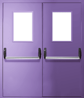Двупольная противопожарная дверь «Антипаника» со стеклом EI 60 (RAL 4005)