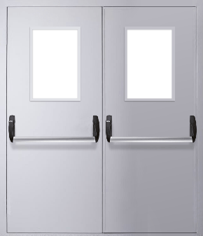 Двупольная противопожарная дверь «Антипаника» со стеклом (RAL 7035)