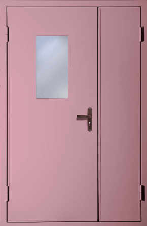 Полуторная техническая дверь со стеклом (RAL 3015)